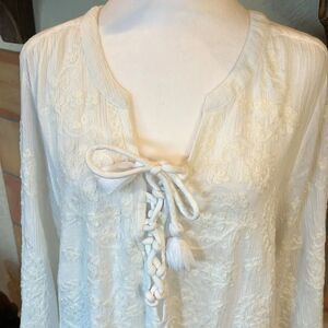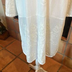 Soft Surroundings White Embroidered Flare Sleeve Boho Dress, size LARGE