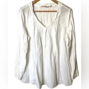 Soft Surroundings White Embroidered Tunic Women's Size M Coastal Grandma Cotton