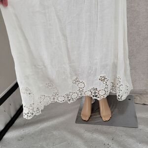 Soft Surroundings White Linen Prarie Dress with Crochet Embroidery Lace Details