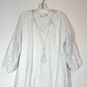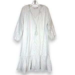 Soft Surroundings White Midi Dress Eyelet City of Gardens Cotton Large