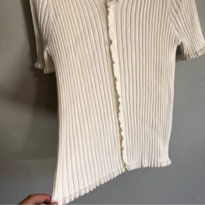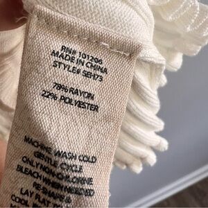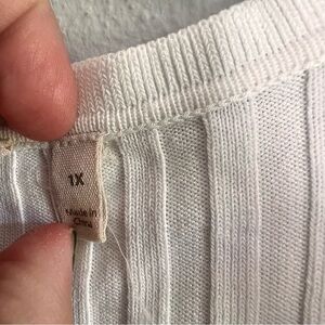 Soft Surroundings White Ribbed Stretchy Short Sleeve V Neck Ruffle Top 1X