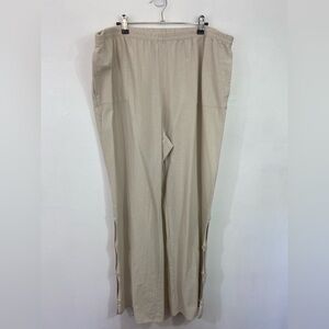 Soft Surroundings Wide Leg Cotton Pants Pull On Buttons Lagenlook Tan Size 1X
