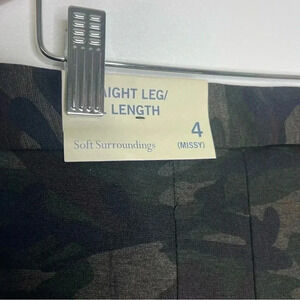 Soft Surroundings, Willow Pants, Camo Print, Army Green Pants, Ponte Knit Pants, Size 4, Straight Leg, Comfortable Pants, NWT, Stylish Stretch Pants, Fall Fashion, Casual to Dressy