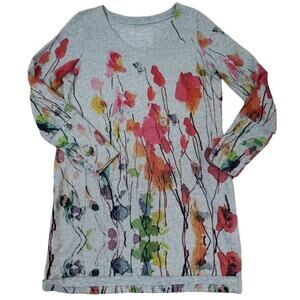 Soft Surroundings ~Woman Size S~ Gray/Orange Floral Long Sleeve Tunic Side Slits
