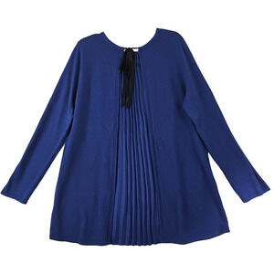 Elevate your wardrobe with this stunning Soft Surroundings tunic sweater in a beautiful royal blue hue. Crafted from a cozy wool blend fabric, this sweater features a scoop neckline and long sleeves with pleated accents. The lightweight and stretchy design makes it perfect for travel, workwear, and casual occasions during winter and spring.