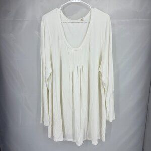 Soft Surroundings Women 3X Long Sleeve Tunic Top Blouse White Pleated Stretch