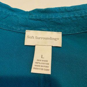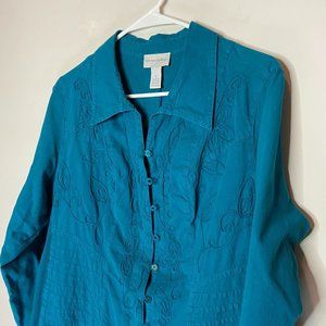 Soft Surroundings Women L Blouse Floral Embroidered Button Front Long Sleeve Top