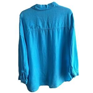 Soft Surroundings Women Large Light Blue 100% Linen Button Front Pocket Top