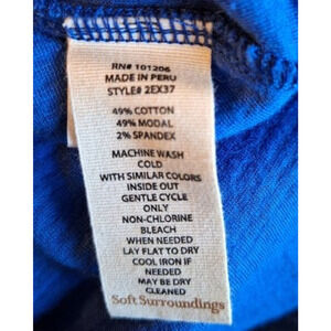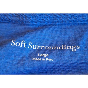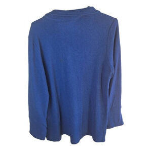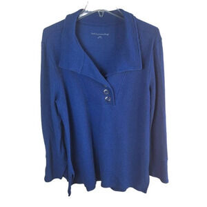 Soft Surroundings Women Large Royal Blue Collared Shirred Textured Knit Top