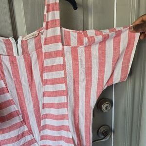 Soft Surroundings Women Linen Blend Top XS Cold Shoulder Striped Casual