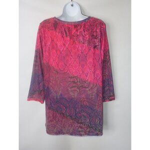 Stylish and comfortable tunic with a vibrant red and purple pattern, perfect for adding a bohemian flair to your wardrobe. Preowned in excellent condition