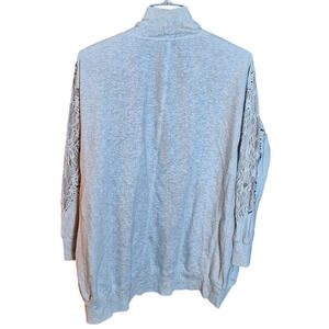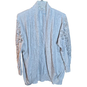 Soft Surroundings Women Medium Beige Open Front Lace Embellish Accent Sleeves Cardigan Sweater