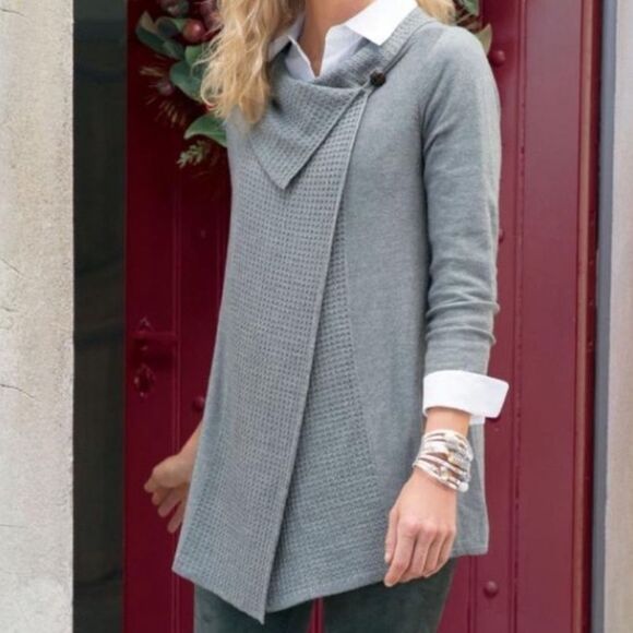 Soft Surroundings Women Miranda Cowl Neck gray cardigan wool Sweater large Petit
