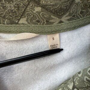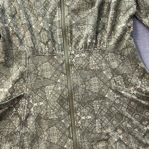 Soft Surroundings Women Olive Green Patterned Zip-Up Long Sleeve Top/Jacket Sz S