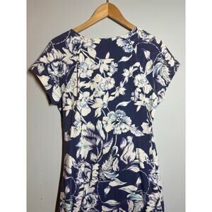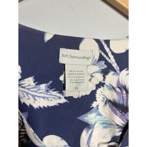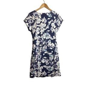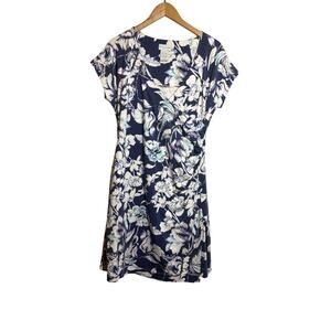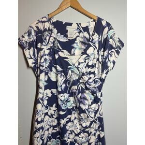 Soft Surroundings Women P/L Blue Surplice Neckline Short Sleeve Floral Dress