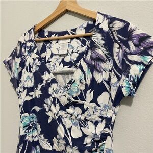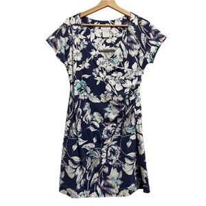 Soft Surroundings Women Shapely Anywhere Dress Blue Indigo Floral Faux Wrap PS