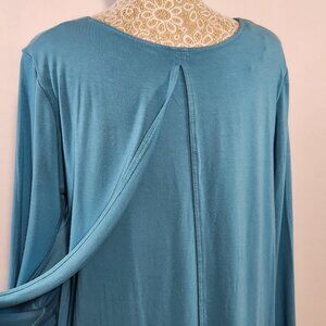 Soft Surroundings Women Size M Aqua Perfect Layers Jersey Knit Tiered Tunic Top
