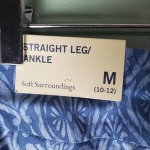 Soft Surroundings Womens Tesoro Print Blue Pull On Straight Leg Ankle Pants Size Medium or 10-12