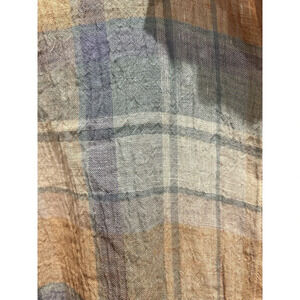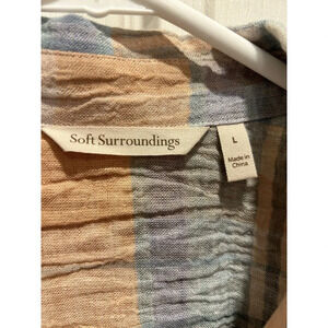 Soft Surroundings Women Top Sz Large Blue Yellow Harvest Linen Plaid Button Down