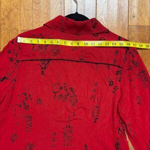 Condition: Pre-owned, good condition Features: Appears to be style 25944 Style Profile: Asian, Artsy, Art to Wear, Red, Comfort, Asymmetric, Lattern Size: Small (no size tag, based on measurements may be a Small) Flaws: No obvious stains, holes or tears Care Instructions: No size, care or material tag. Please see photos for details and measurements. Usually ships next business day. Please let us know if you have any questions. Thank you!