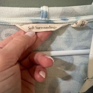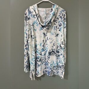 Soft Surroundings Women XL Aqua Swirl Hooded Roll Tab Pullover Top USA MADE