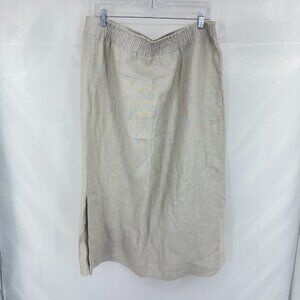 Soft Surroundings Women XL Linen A Line Skirt Beige Stretch Waist Side Slits