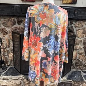 Soft Surroundings Womens 1X Orange Floral Boho V Neck Pullover Tunic Sweater Top