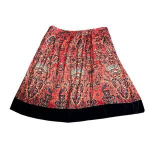 Soft Surroundings Womens 3X Midi Skirt Tawny Batik Floral Boho Velvet Trim