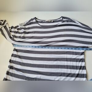 Soft Surroundings Women's Adrift Striped Tie Sleeve Top Size Large Grey/White