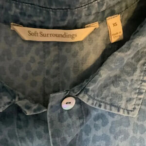 Soft Surroundings Womens Animal Print Button Down Shirt Long Sleeve Tencel XS