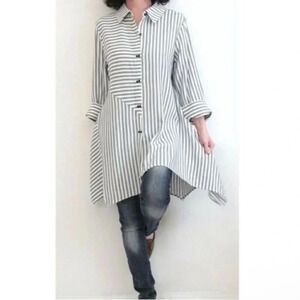 Soft Surroundings Women's Asymmetrical 3/4 Sleeve Striped Top Size PXS GUC