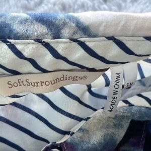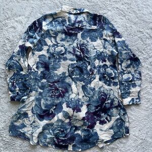 Soft Surroundings Women's Blue Floral Tunic Button Up Side Split Blouse 1X 58945