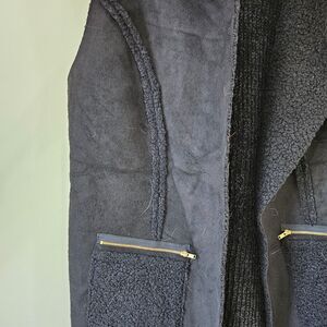 Soft Surroundings Womens Boucle Knit Cardigan Sweater Vest Medium Black Chenille