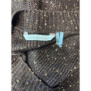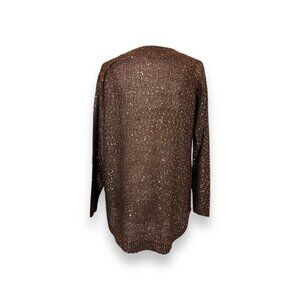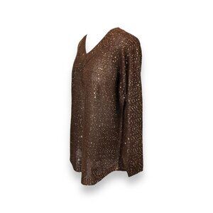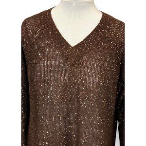 Soft Surroundings Womens Brown Sequin V-Neck Sweater Size L Polyester Acrylic