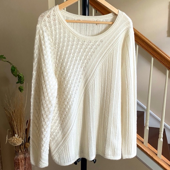 Soft Surroundings Womens Cashmere Pullover Open Knit Sweater Cream Size Large