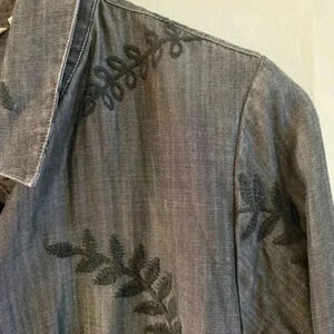 Soft Surroundings Womens Size Medium Chambray Oversized Blouse Tunic Blue. This top is pre-owned. Great condition. No flaws. Measurements: 19.5 inch chest 21 inch waist 30 inch length 24 inch arm length