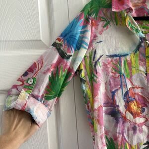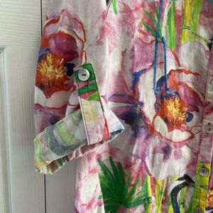 Soft Surroundings Women's Colorful Button Up Casual Art to Wear Tropical Medium