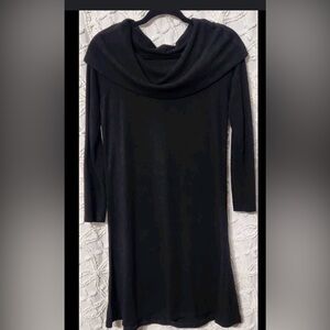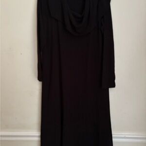 Stylish black dress with a cowl neck design. Perfect for any occasion.
