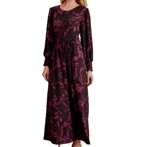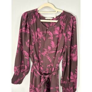 Soft Surroundings Women's Dianthe Belted Maxi Dress in Purple Botanical Size L