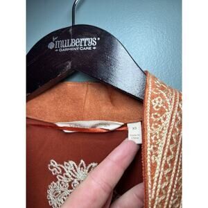 Soft Surroundings Womens Faux Suede Leona Duster Jacket Embroidered XS Pockets
