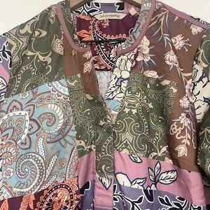 Soft Surroundings Womens Floral Paisley Multicolor Tunic Top Size M V-neck