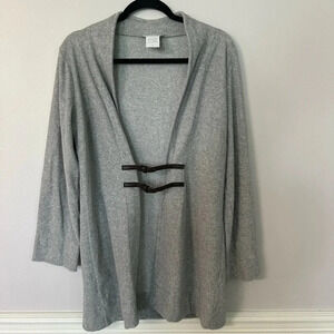 Soft Surroundings Women’s Gray Open Front with Leather Buckles Cardigan Sz M GUC