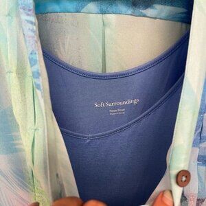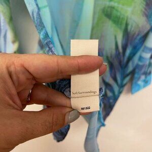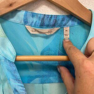 Soft Surroundings Womens Ione Tropical Chiffon Tunic Blouse Top Blue Size PS