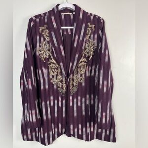 Soft Surroundings Women's Jacket Blazer Topkapi Ikat Printed Beaded Purple XL