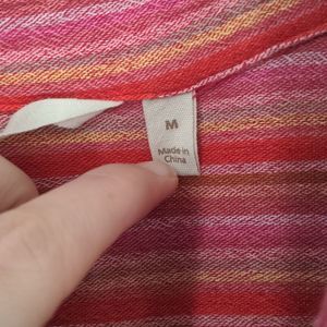 Soft Surroundings Women's Kriya Tunic Red Colorful Shirt Size Medium Roll Tab