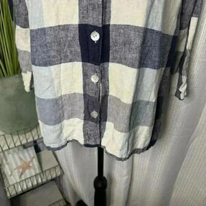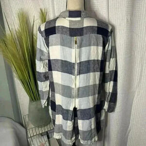 Soft Surroundings Women’s L Blue Check Back Zip Linen Long Sleeve Tunic Top