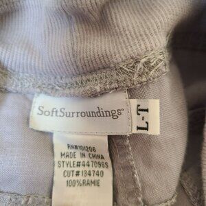 Soft Surroundings Women's L -T Gray Wide Leg Elastic Waist Pull On Cargo Pants are comfortable, stylish, and versatile. Perfect for casual and active wear, they feature a relaxed fit and convenient pockets.
