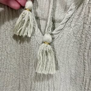 Soft Surroundings Women’s Large Boho Tunic Blouse Sage Green Tassle Short Sleeve