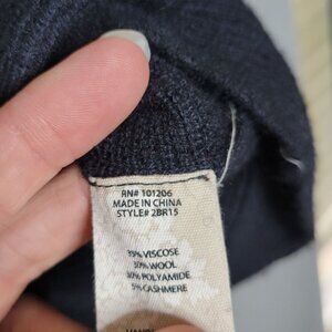 Crafted from a luxurious blend of viscose, wool, polyamide, and cashmere, this Soft Surroundings sweater offers both comfort and warmth. Its elegant navy blue hue and cowl neck design provide a sophisticated look, suitable for various settings, from casual gatherings to relaxed evenings. The sweater's generous fit ensures ease of movement, making it a versatile addition to any wardrobe.
