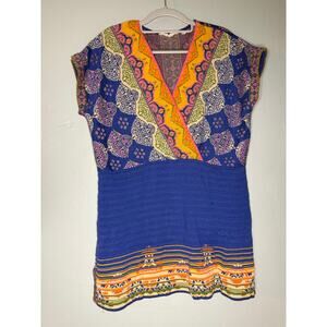 Soft Surroundings Women’s Large Kualoa Blue Tunic Cap Sleeve Sweater Wrap V-neck size xl. GUC.